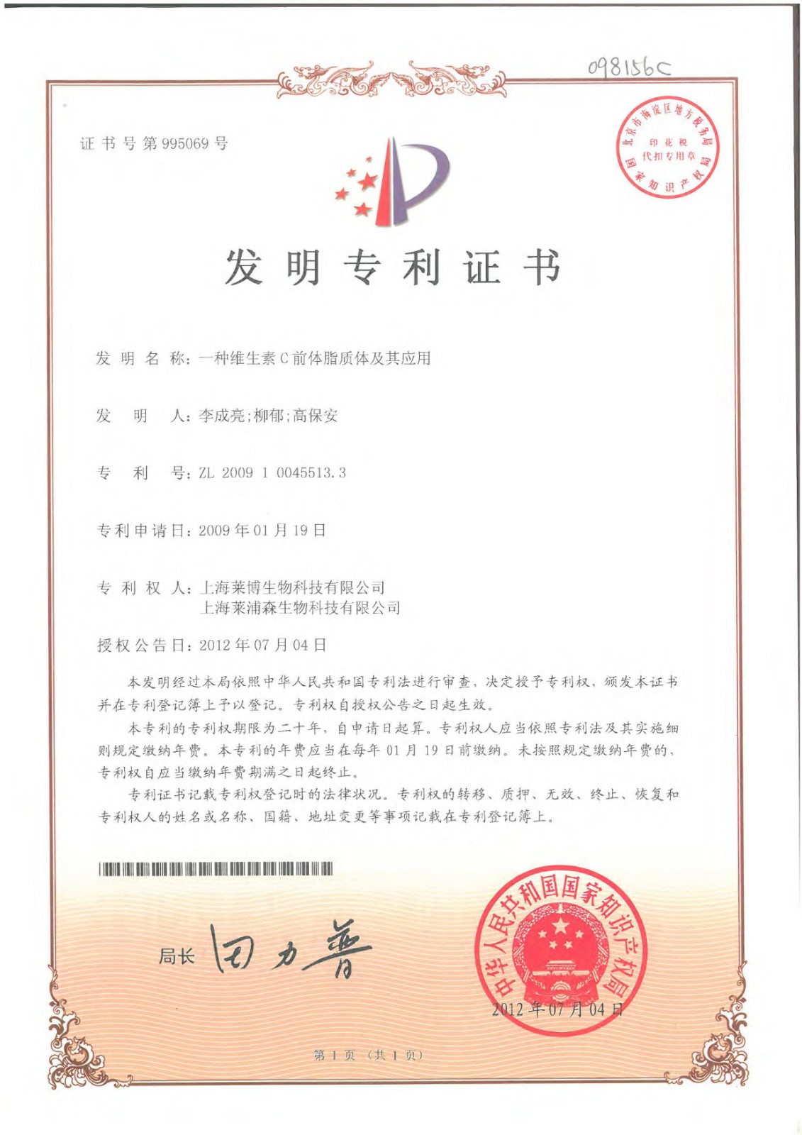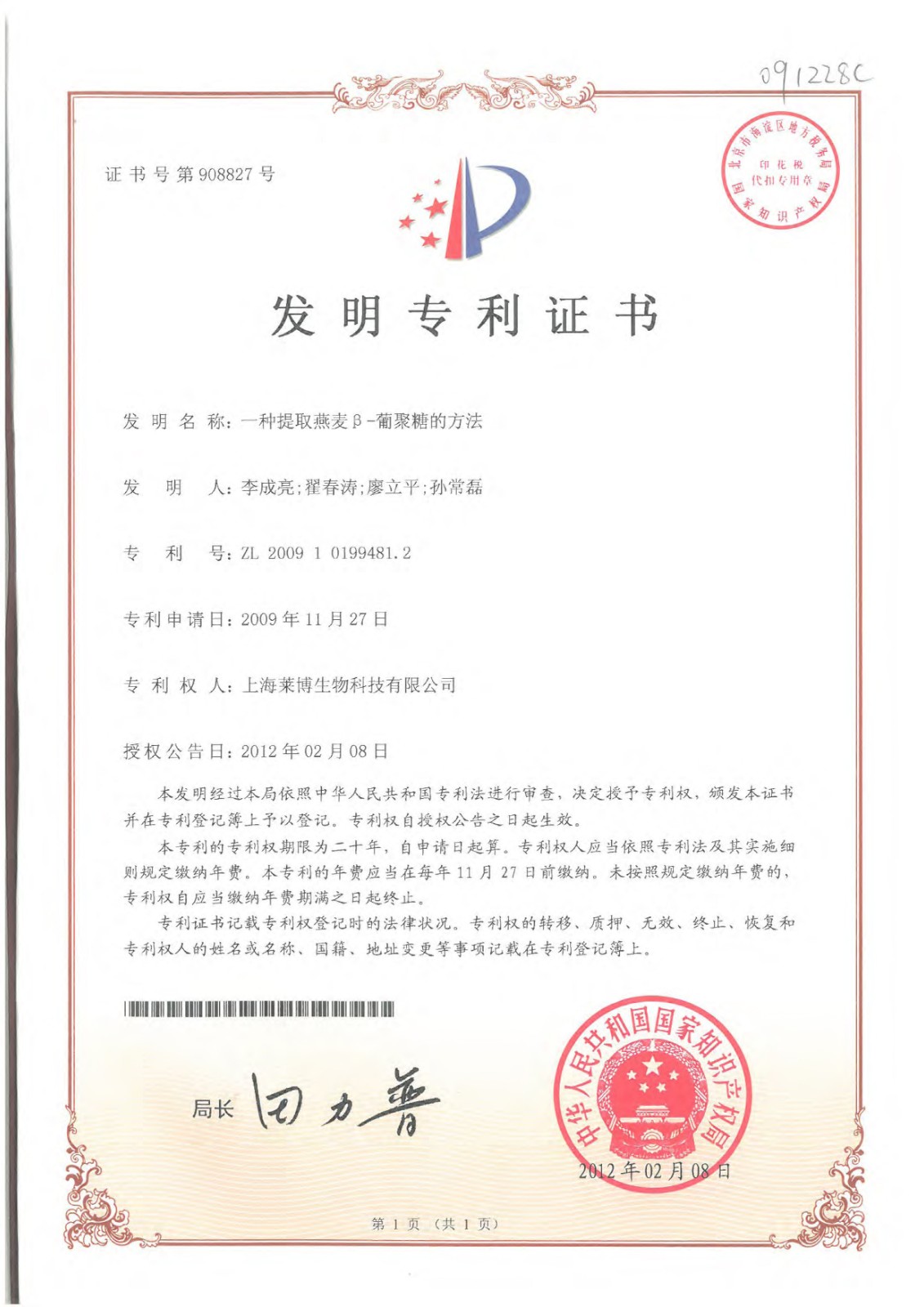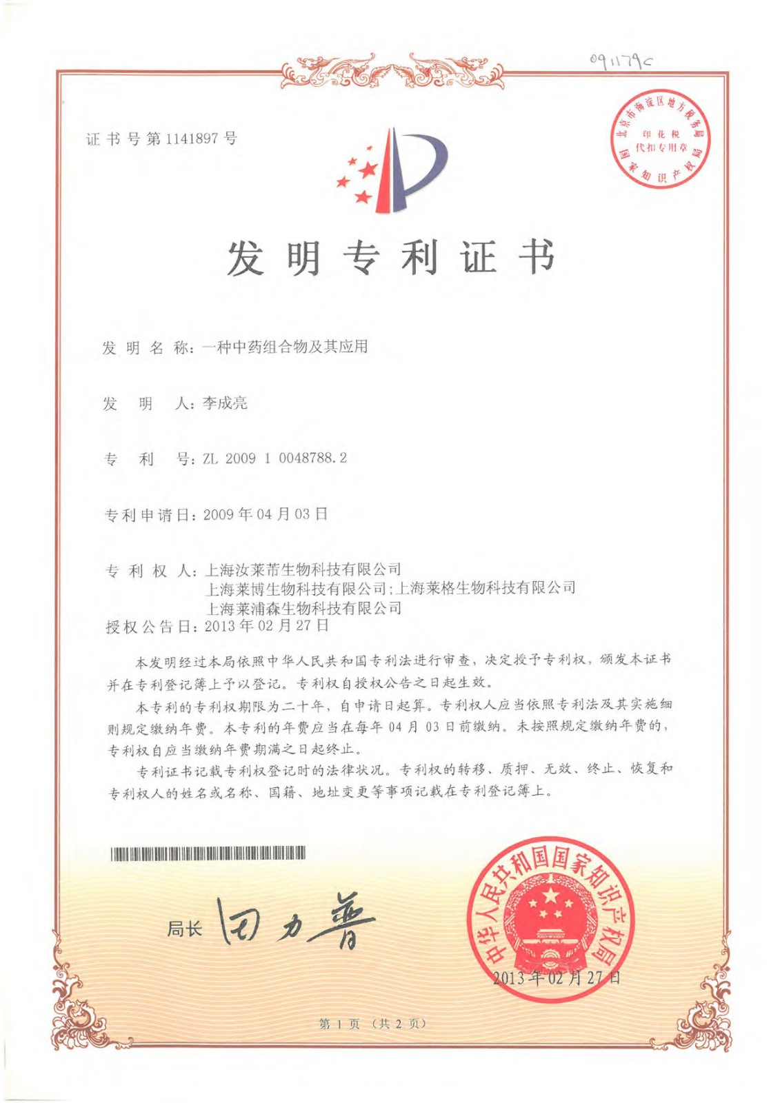 超过50项专利证书